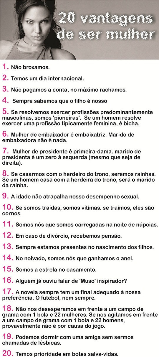 Os namorados e maridos não são chegados ao nhém-nhém-nhém. Mulher que fica falando e reclamando acaba ganhando um cartão vermelho na primeira oportunidade.